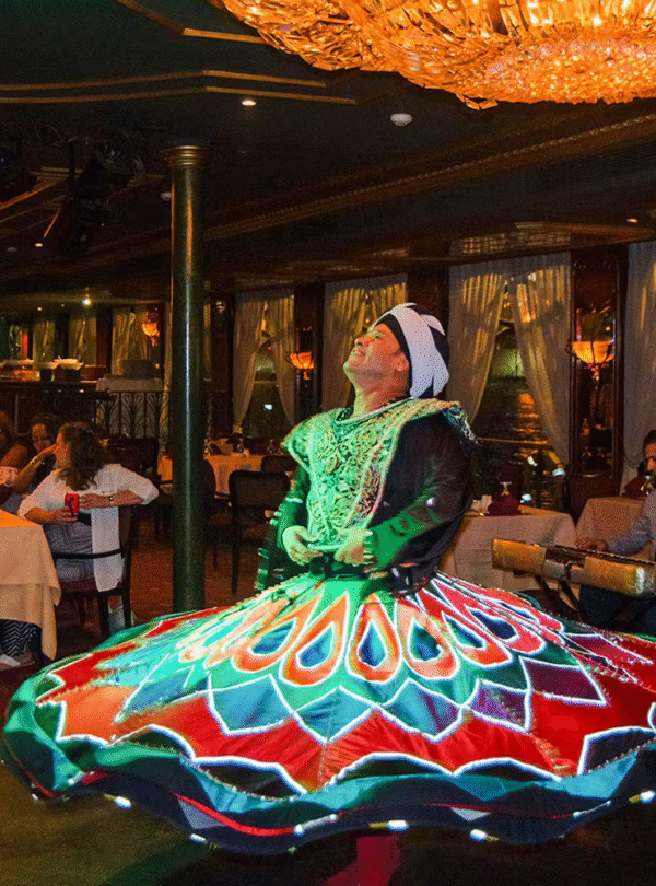 Nile Maxim is Cairo’s most prestigious floating restaurant in Cairo, known for its refined service and elite atmosphere. It is perfect for VIP guests, honeymooners, and those seeking the ultimate Nile dining experience. Duration is around two hours, during this two-hour cruise, you will be treated to panoramic views of the city’s skyline while enjoying live entertainment onboard, including mesmerizing belly dancing and a captivating folkloric Sufi performance with departure at 7:30 PM. Experience the enchanting charm of the Nile and captivating live entertainment as you embark on an unforgettable journey aboard the Nile Maxim Dinner Cruise.