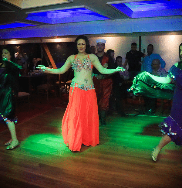 Nile Crystal and Pharaohs are elegant deluxe-level cruises that blend comfort, style, and the authentic Egyptian spirit. They are ideal for couples, families, and small groups looking for an upgraded experience. The cruise lasts about two and a half to three hours, with lunch and dinner options available.